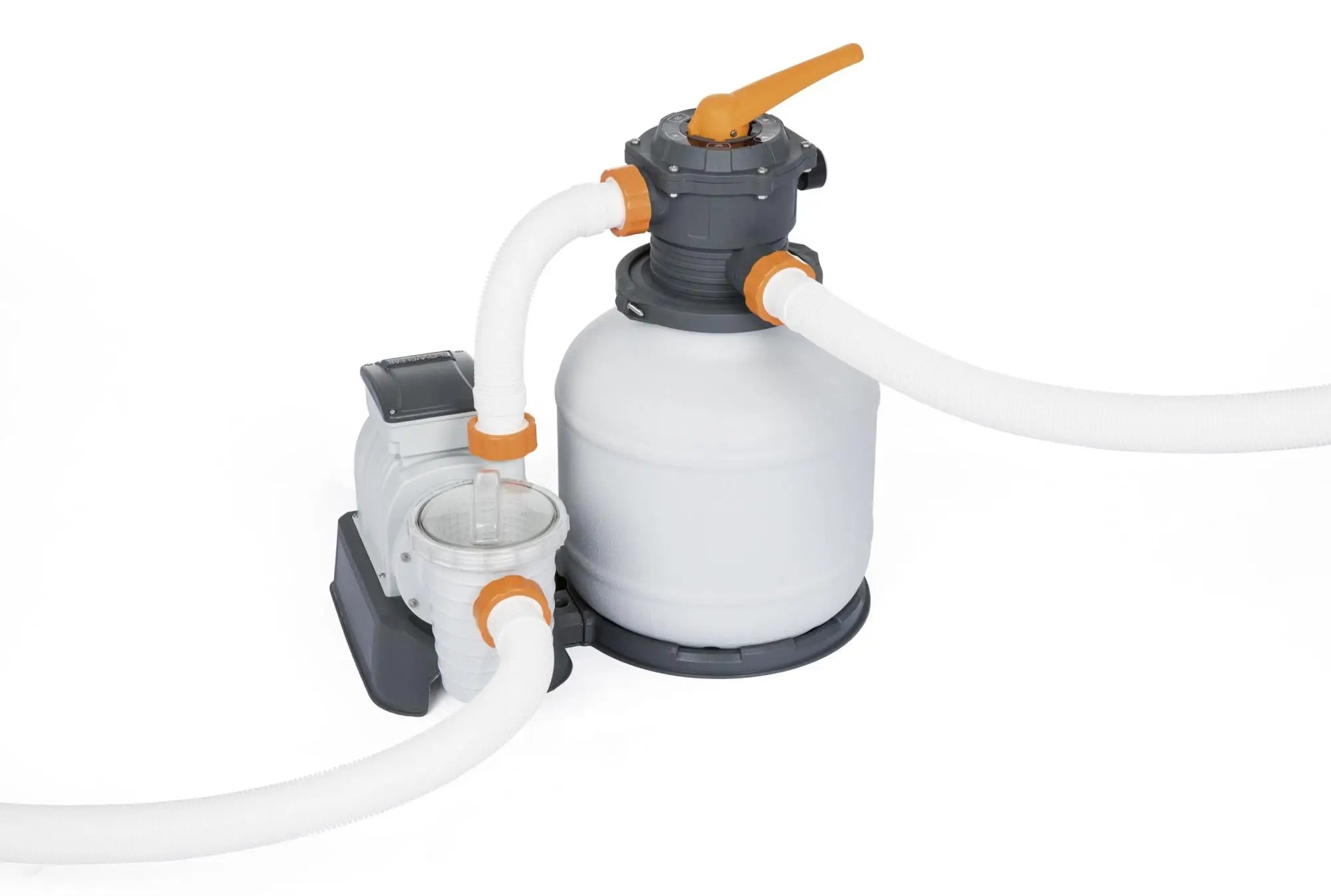 - 2,200 gal. (8,328 L) sand filter pump included